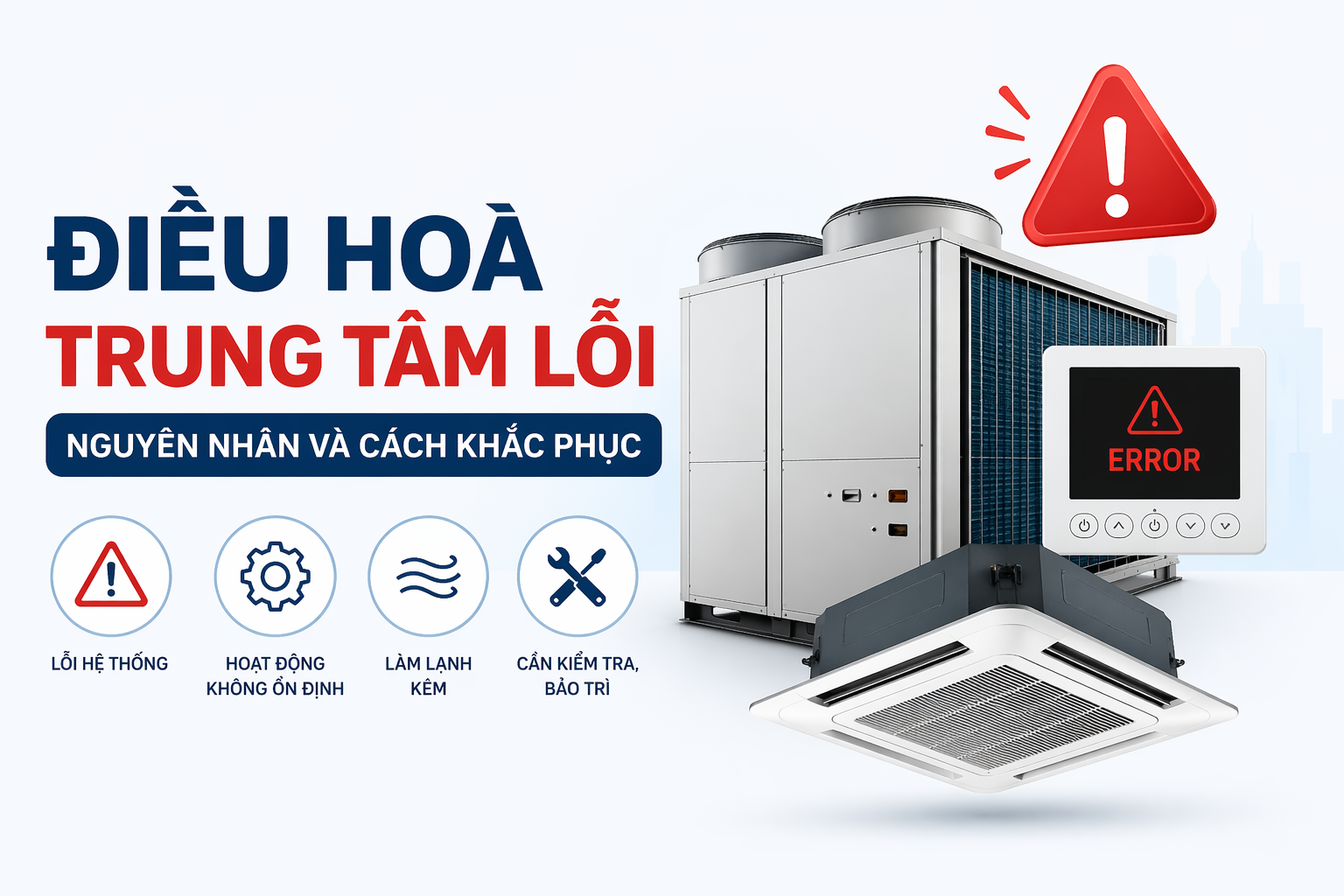 Thoát nước ngưng: Đảm bảo độ dốc ống thoát hoặc sử dụng bơm tự động để ngăn tuyệt đối rủi ro tràn nước hư hỏng trần.