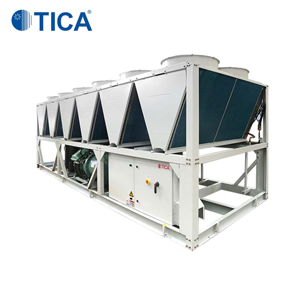 Dòng Tica TASF là hệ thống máy làm lạnh nước (Chiller) hoặc điều hòa công suất lớn dạng giải nhiệt bằng không khí (Air-Cooled), sử dụng quạt gió để tản nhiệt trực tiếp ra môi trường.