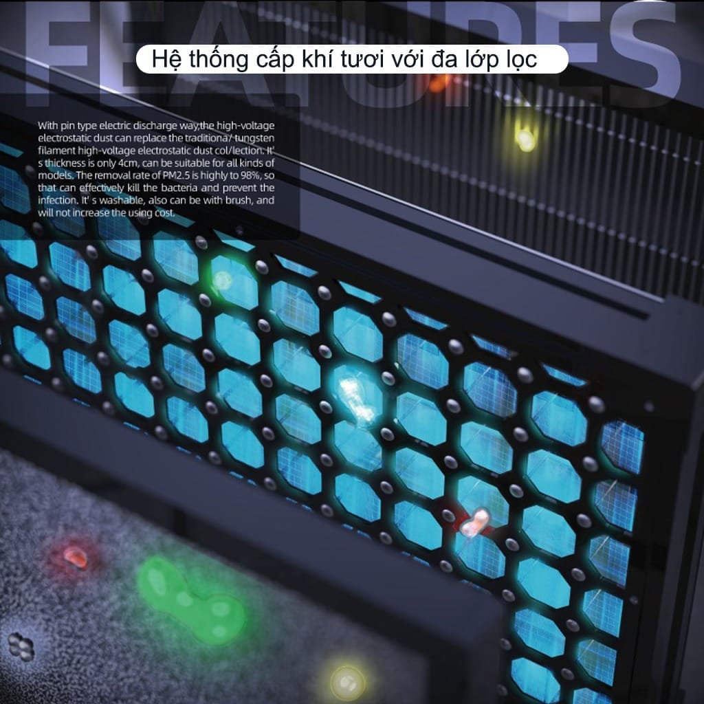 - Tiêu chuẩn lọc đạt chuẩn H13 trở lên, lọc được 99.97% các hạt ≥0.3 micron, đây là những tác nhân gây hại hàng đầu cho hệ hô hấp và tim mạch. Lọc sạch bụi mịn PM2.5 và PM10.