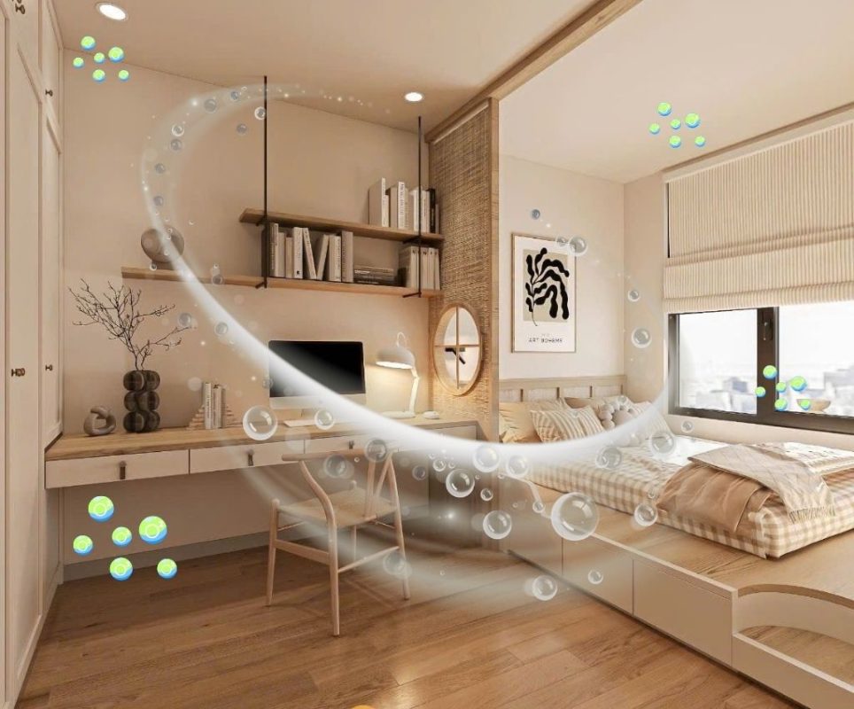 - Không khí được lưu thông, trao đổi liên tục như vậy sẽ giữ được sự khô thoáng cho căn phòng, ngăn chặn nấm mốc phát triển, gây hỏng hóc đồ đạc, vật dụng và tác động lên hệ hô hấp của các thành viên.