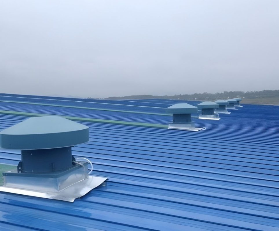 Quạt thông gió mái nhà (nóc nhà) chuyên dùng để lắp đặt ốp vào mái để thông gió và hút không khí nóng, oi bức từ bên trong ra ngoài tạo sự thông thoáng cho nhà xưởng, nhà máy sản xuất, các phòng máy, kho hàng, chuồng trại…