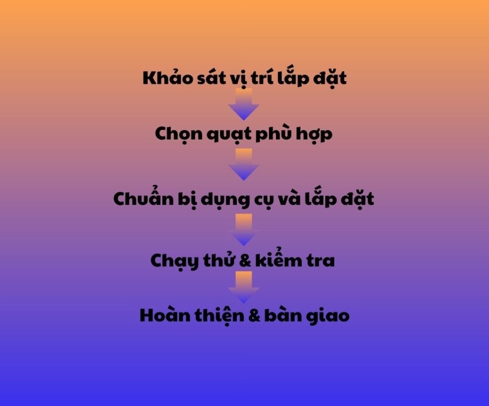 Lắp quạt thông gió tròn đúng quy trình kỹ thuật đảm bảo 5 bước sau: